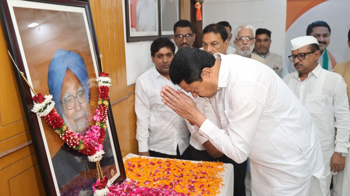 काँग्रेस पक्षाचे ज्येष्ठ नेते, देशाचे माजी पंतप्रधान डॉ. मनमोहन सिंग यांना प्रदेश काँग्रेसचे मुख्यालय, टिळक भवन येथे श्रद्धांजली अर्पण करण्यात आली. यावेळी प्रदेशाध्यक्ष नाना पटोले, काँग्रेस वर्किंग कमिटीचे सदस्य व प्रदेश कार्याध्यक्ष नसीम खान, अल्पसंख्याक विभागाचे अध्यक्ष वजाहत मिर्झा, माजी आमदार सुभाष चव्हाण, सरचिटणीस राजेश शर्मा, मुनाफ हकीम, प्रदेश प्रवक्ते भरतसिंह, निजामुद्दीन राईन यांच्यासह पदाधिकारी व कार्यकर्ते यांनी पुष्पहार घालून आदरांजली अर्पण केली.